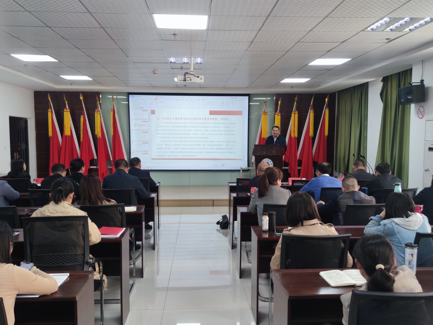 杨知勤书记指出,本次报告有高度、有深度,殷主任结合其工作中的鲜活实例为我们进行了理论阐述,让在座的老师们受益匪浅。他强调,意识形态工作事关国家政治安全和经济社会发展全局,我校要高度重视,聚焦重点,牢牢掌握意识形态工作话语权和主动权,持续加强理论武装,强化阵地管理,壮大主流思想舆论,激励广大师生踔厉奋发、勇毅前行、团结奋斗。