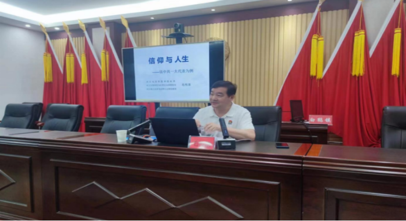 为庆祝中国共产党成立102周年,激励全镇党员干部弘扬伟大的建党精神,激发奋进动力,6月29日,省党史宣讲团成员、我校澳门电子pg游戏官网院长毛传清教授受白鹤镇党委邀请,赴该镇给党员干部上了一堂“信仰与人生”专题党课。学校党委书记杨知勤、组织部副部长肖玉、驻村工作队,白鹤镇党委书记蔡建宇、党委副书记、镇长唐盛波、党员代表参加了本次讲座。