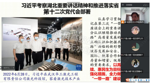 为进一步深刻认识习近平总书记考察湖北的重大意义。坚决把总书记的殷殷嘱托转化为做好湖北工作的实际行动,立足新发展阶段,完整、准确、全面贯彻新发展理念,推进落实省第十二次党代会部署,努力建设全国构建新发展格局先行区,教育引导师生创造新时代更加辉煌的业绩。根据省委宣传部,省教工委的指示,澳门电子pg游戏官网发扬思政政治理论课主阵地作用,把习近平总书记考察湖北重要讲话精神及省第十二次党代会部署融入课堂,纳入新学期“开学第一课。
