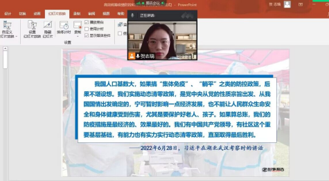 澳门电子pg游戏官网贺志瑞老师在《形势与政策》课堂《高效统筹疫情防控和经济社会发展》中,将习近平主席疫情之后两次考察湖北重要讲话精神灵活运用在课堂,“疫情是一次危机,一次大考,是一场人民战争”,“针尖大的窟窿能漏过斗大的风”,“摆在湖北面前的紧要任务,就是权利做好统筹疫情防控和经济社会发展工作”,“‘集体免疫’、‘躺平’之类的防控政策是不可取的”等等,总书记殷殷嘱托,指示我们要打好疫情防控战,直至最后的胜利。让同学们深刻认识到目前中国的疫情防控措施是符合中国国情的,是科学有效的,我们的经济社会发展趋势是稳中向好,从而坚定我们夺取疫情防控和经济社会发展双胜利的信心。
