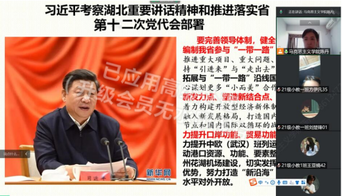 澳门电子pg游戏官网陈丹老师在《形势与政策》课堂《一带一路——从总体布局到走深走实》中,将习近平总书记对湖北工作的重要指示融入课堂,湖北要站在党和国家事业发展全局的高度谋划湖北发展,找准湖北发展的定位,抢抓构建新发展格局、“一带一路”等重要机遇,稳住经济基本盘。湖北从长江走向世界,“一带一路”上的“湖北身影”愈来愈挺拔。武汉至欧洲的国际班列累计开通16条线路,辐射34个国家、70多个城市,实载率达97.7%,居全国各中欧班列线路之首。铁、水、空立体双向大通道,助力武汉奔向全球货物分拨中心。构建大通关,5个国家级口岸、3个综合保税区、5个保税物流中心(B型)、15个特殊商品进境指定监管场地,搭建一张水、陆、空立体开放的口岸体系网,货物流通更加高效便捷;