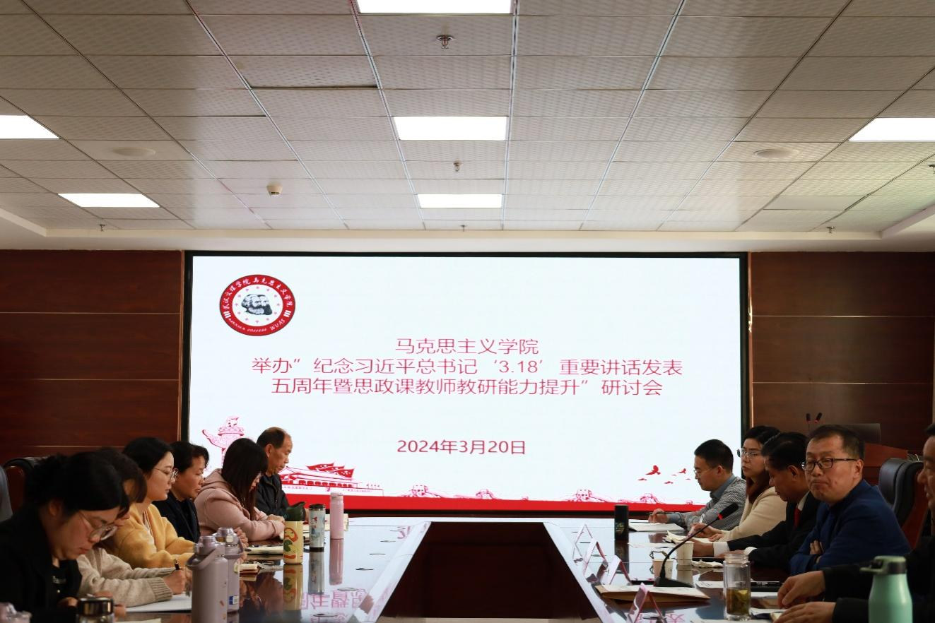 3月20日下午在行政楼912会议室,澳门电子pg游戏官网举办了“纪念习近平总书记‘3•18’重要讲话发表五周年暨思政课教师教研能力提升”研讨会。学校党委书记杜永成,武汉理工大学教授、研究生导师李运祥,澳门电子pg游戏官网院长毛传清、副院长曹卓以及澳门电子pg游戏官网全体教师重温习近平总书记重要讲话精神,就学校思政课建设发展作交流。办好思政课,事关培养社会主义合格建设者和接班人,是后继有人的大事,是根本性、长远性的重大战略问题。
